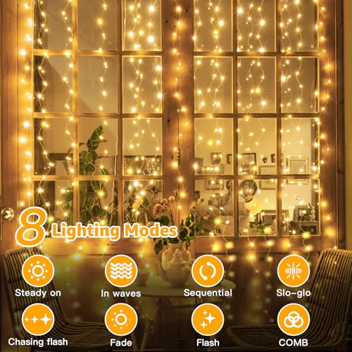 Ollny - 300LED Waterproof Curtain Lights, 3mx3m for Indoor/Outdoor Use