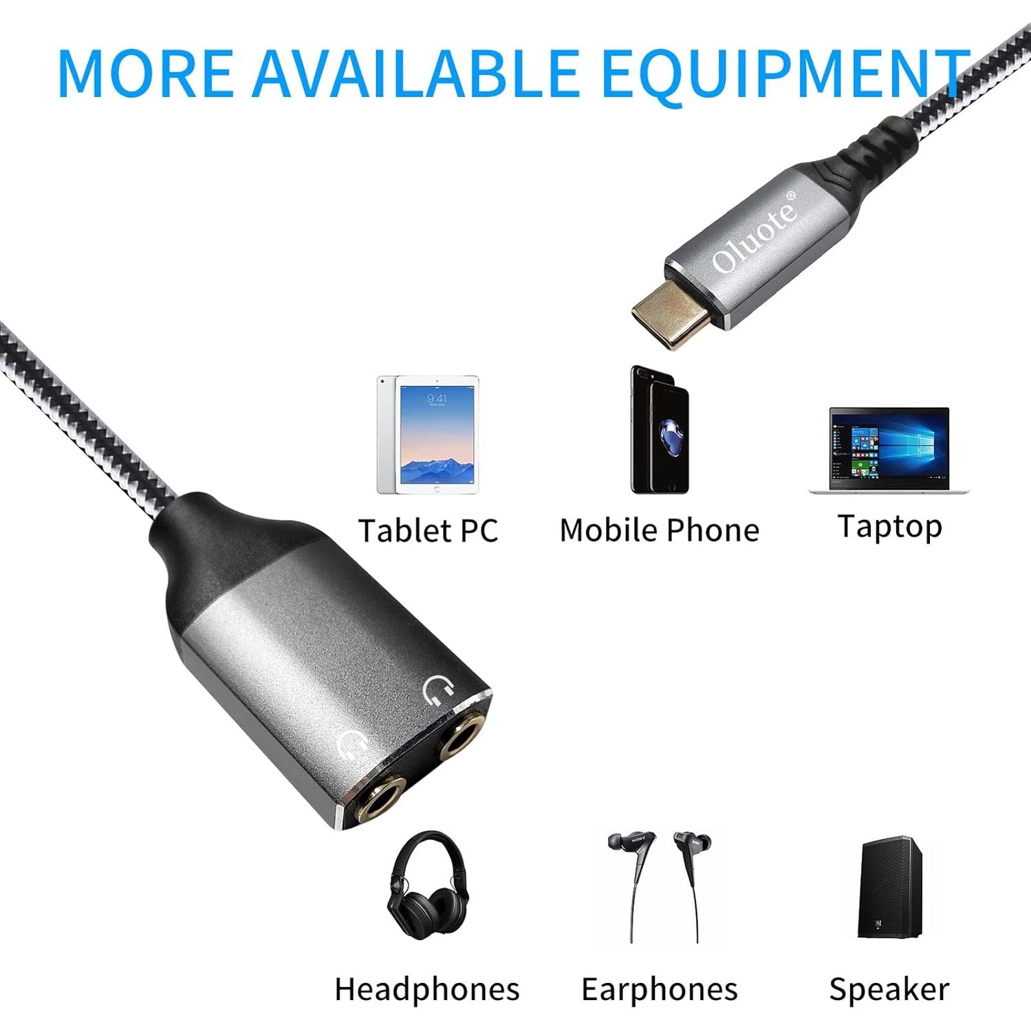 Oluote - Type C to Dual Headphone Jack Aux Female 3.5mm Audio Adapter (3M)