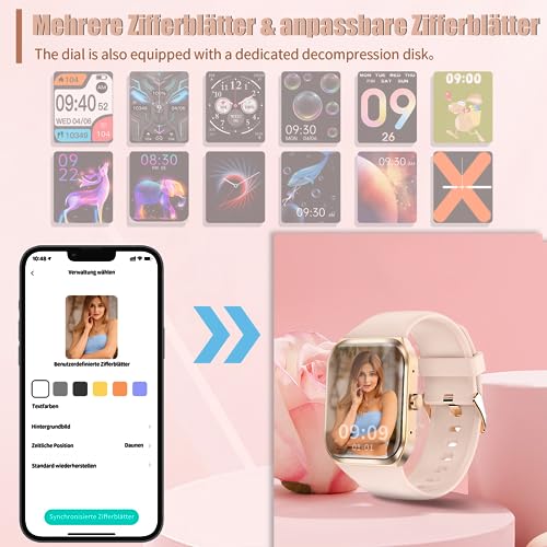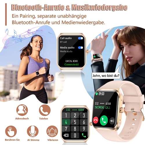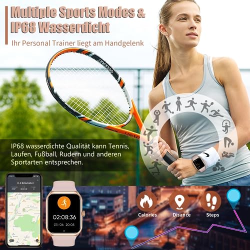 Pasonomi - Women's Smartwatch with Phone Function, 1.91" Touchscreen, IP68 Waterproof, Heart Rate Monitor