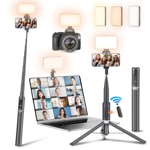 Peyou - 57" Portable Selfie Stick Tripod with Detachable Fill Light & Bluetooth Remote