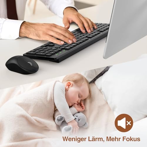Qcen - Ergonomic Wireless Keyboard & Mouse Set, Quiet, Numeric Keypad, 2.4 GHz