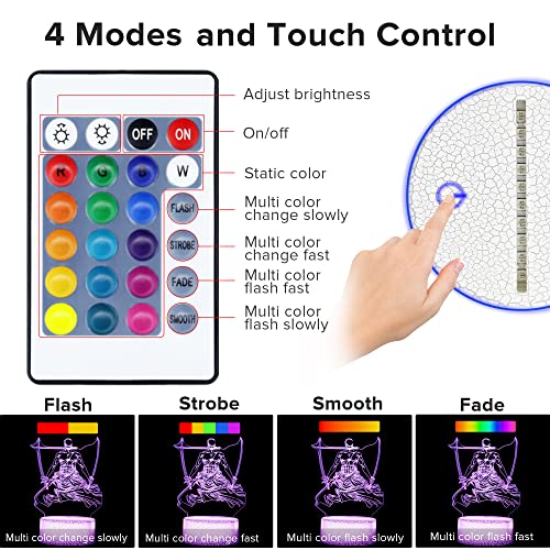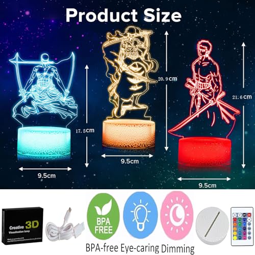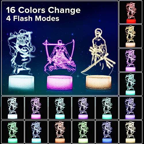 QQAAMZ - Roronoa Zoro 3D Illusion Lamp, LED Touch Control, Perfect Gift for Kids