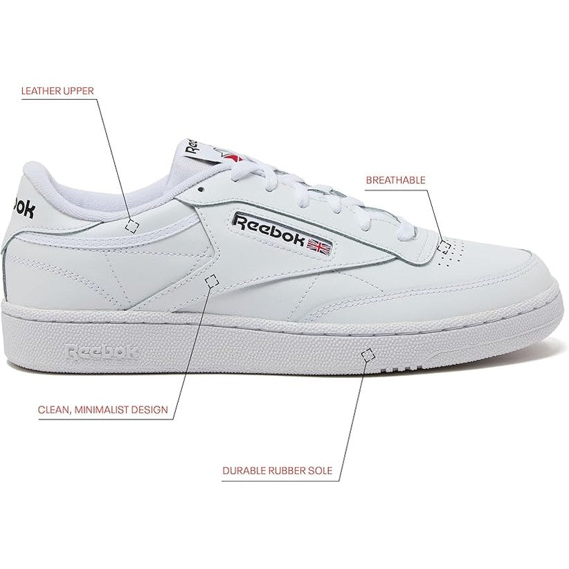 • Keywords: Reebok Club C 85, men’s tennis shoes, white sneakers, low-top leather sneakers, EU 34 casual shoes
