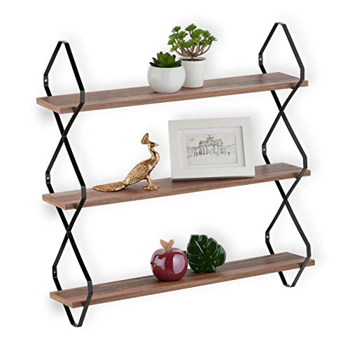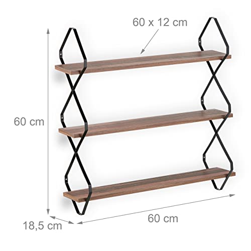 Relaxdays - Industrial 3-Shelf Wall Shelf, MDF & Metal, Brown/Black