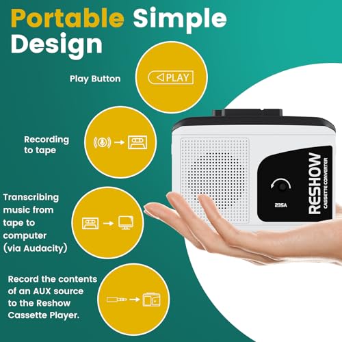 Reshow - Portable Cassette Player with MP3 Converter, Built-in Microphone, Earphone Jack