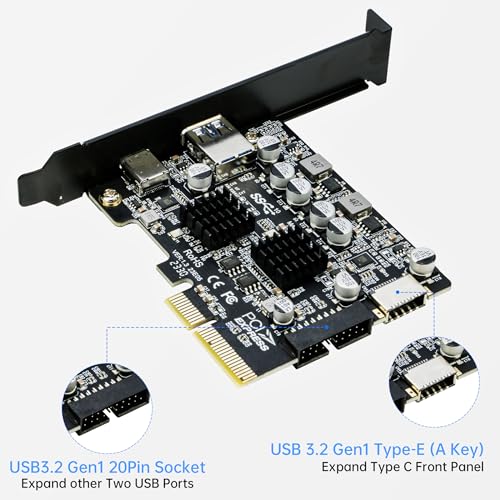 Riitop - USB 3.1 PCIe Card, 10Gbps Speed, 20Pin + Type-E + USB C Adapter