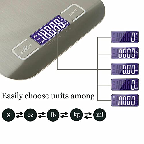 • Keywords: digital kitchen scale, food weighing scale, stainless steel scale, electronic cooking scale, backlit display scale