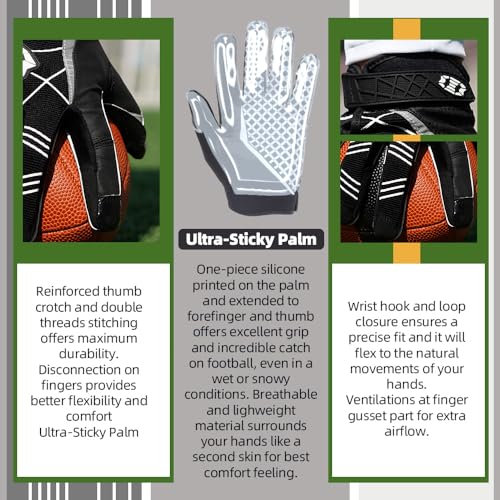 Seibertron - Pro 3.0 Elite Ultra-Stick Football Gloves for Youth & Adults