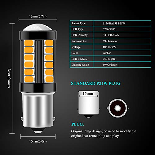 Sidaqi - 4 Pack BA15S P21W 1156 Amber LED Bulbs for Turn Signal Lights, 900LM