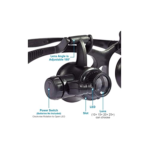 SPEFMODD - LED Headband Magnifier with 10X-25X Magnification for Precision Work