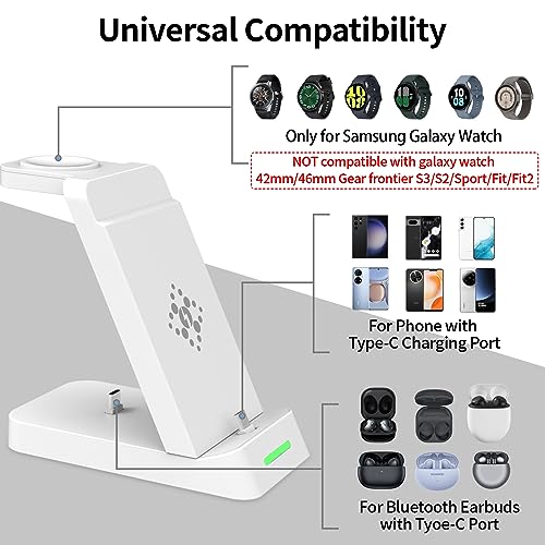 Spguard - 3 in 1 Wireless Charging Station for Samsung Galaxy Devices, Fast Charging, Compatible with Galaxy Watch and Buds