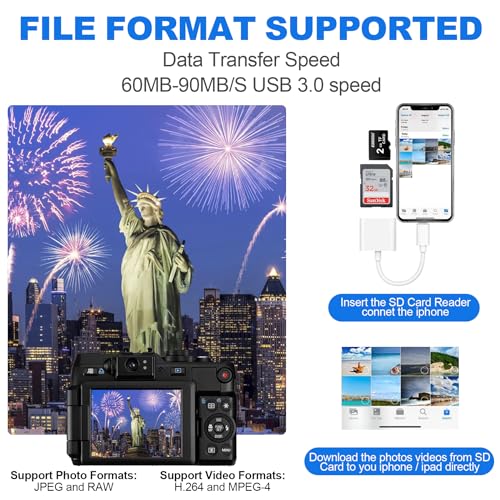 Square - 3 in 1 SD Card Reader for iPhone, Dual Slot, Plug and Play, No App Needed