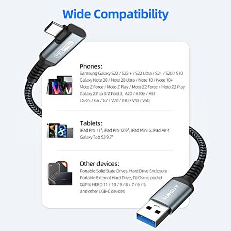 Sunguy Usb C Cable, 90 Degree, Compatible With Galaxy S22 & More, Fast 10Gbps Transfer