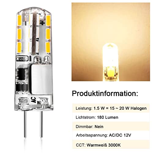 Tailcas - G4 LED Bulb 1.5W, 180LM, Warm White 3000K, Flicker-Free, Pack of 10