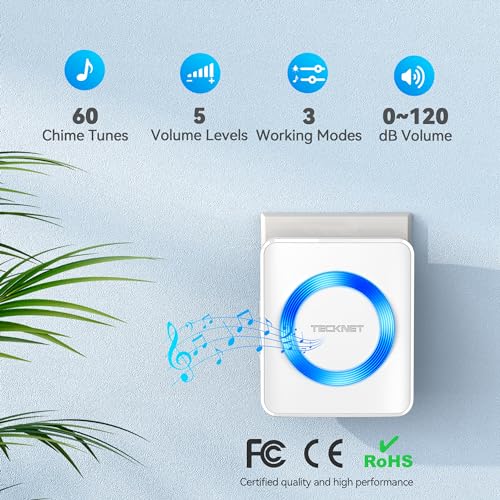 Tecknet - Waterproof Wireless Doorbell with 400m Range, 60 Chimes, 5-Level Volume