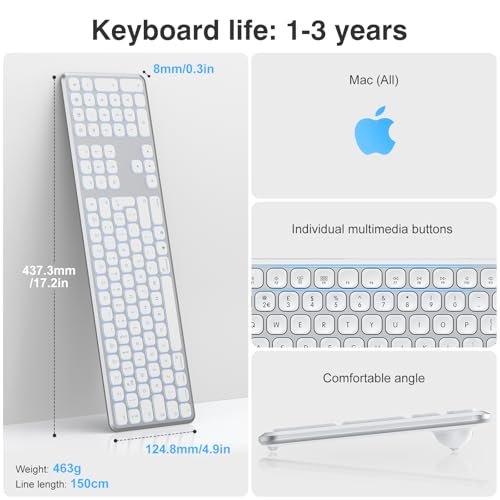 TECURS - Mac Backlit USB Wired Keyboard for iMac, MacBook Pro/Air - Silver