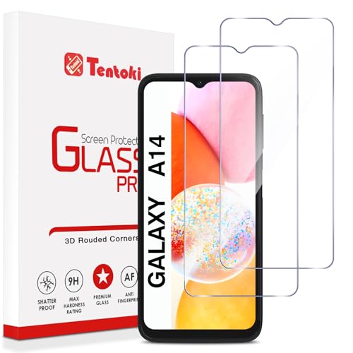 Tentoki - Pack of 2 Tempered Glass Screen Protectors for Samsung Galaxy A14 5G/4G - Bubble-Free, 9H Hardness, Anti-Scratch, Ultra Transparent