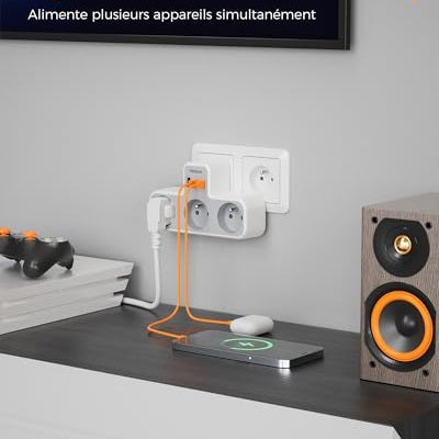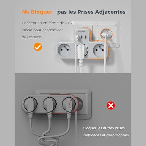 Tessan - 6-in-1 Multi Socket with 3 Wall Sockets & 3 USB Ports for Home & Travel