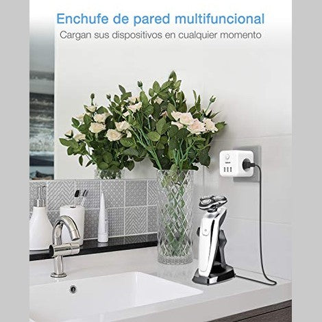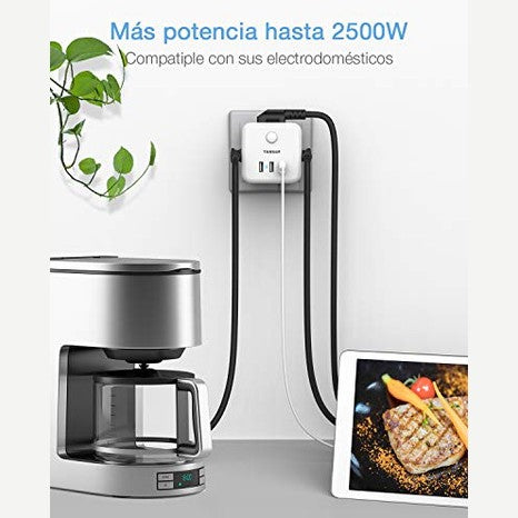 Tessan - USB Plug Socket Adapter with 3 USB Ports, 6-in-1 Charger, Switch