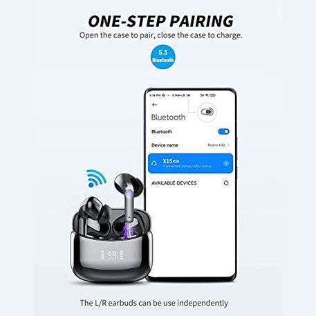 Tiksounds - Wireless Earbuds with Microphone, IPX7 Waterproof, 35H Playtime, LED Display