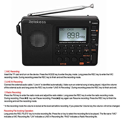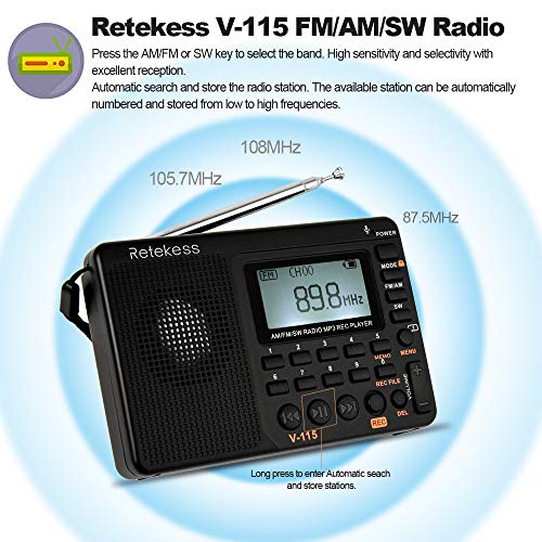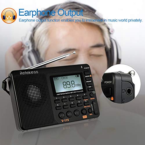 Tivdio - Multiband FM/AM/SW Radio Receiver with REC, Bass Sound, MP3 Player