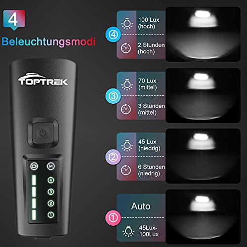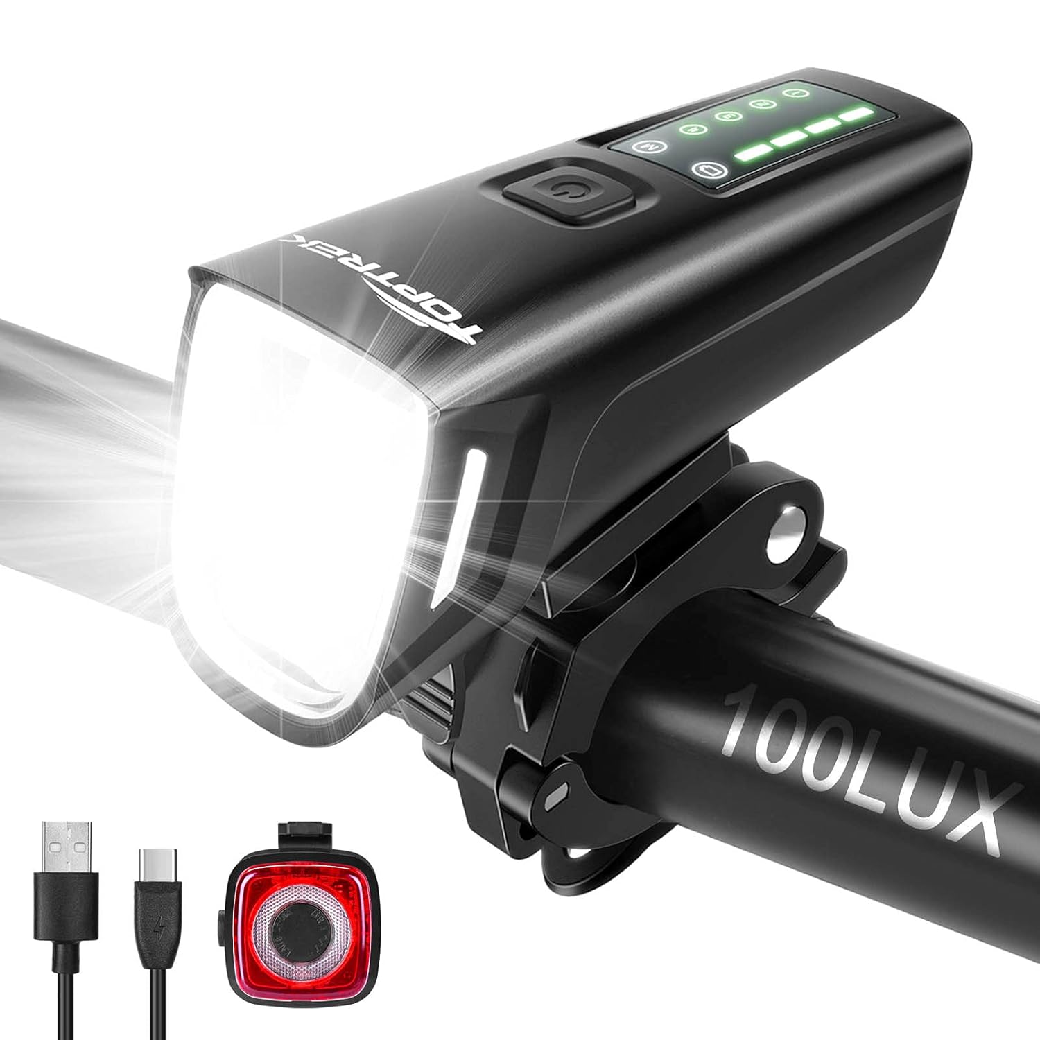 Toptrek - USB Rechargeable Bicycle Light Set With 100 Lux, 4 Modes & Rainproof Design