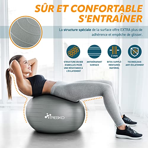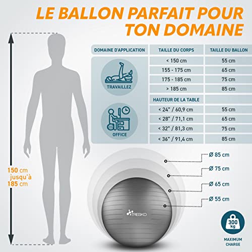 TRESKO - BPA Free Gym Ball with Air Pump | Anti-Burst, 300 kg Capacity, Ideal for Fitness & Yoga