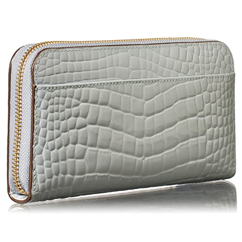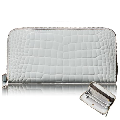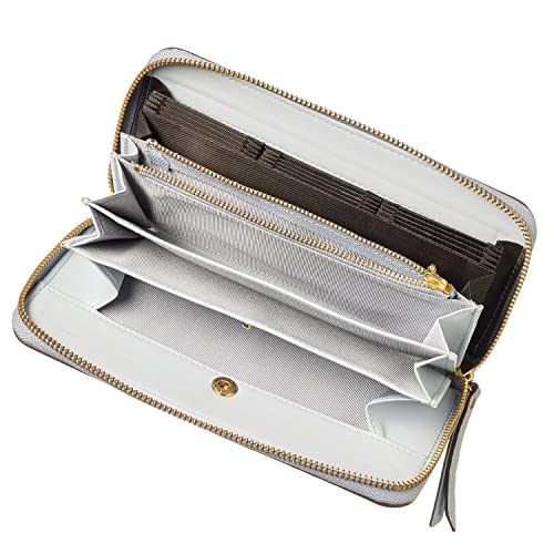 Tuscania - Elegant Long Leather Wallet in Light Blue, Vertical Card Case, Gift Box