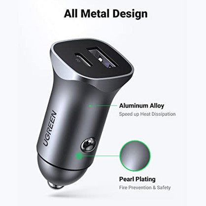 UGREEN - 30W Dual Port Car Charger with 1M USB C Cable, Fast Charging for iPhone 15/14/13, Galaxy S24/S23