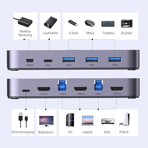 • Keywords: HDMI KVM switch, 4K video resolution, USB-C connectivity, multi-device management, UGREEN HDMI switch