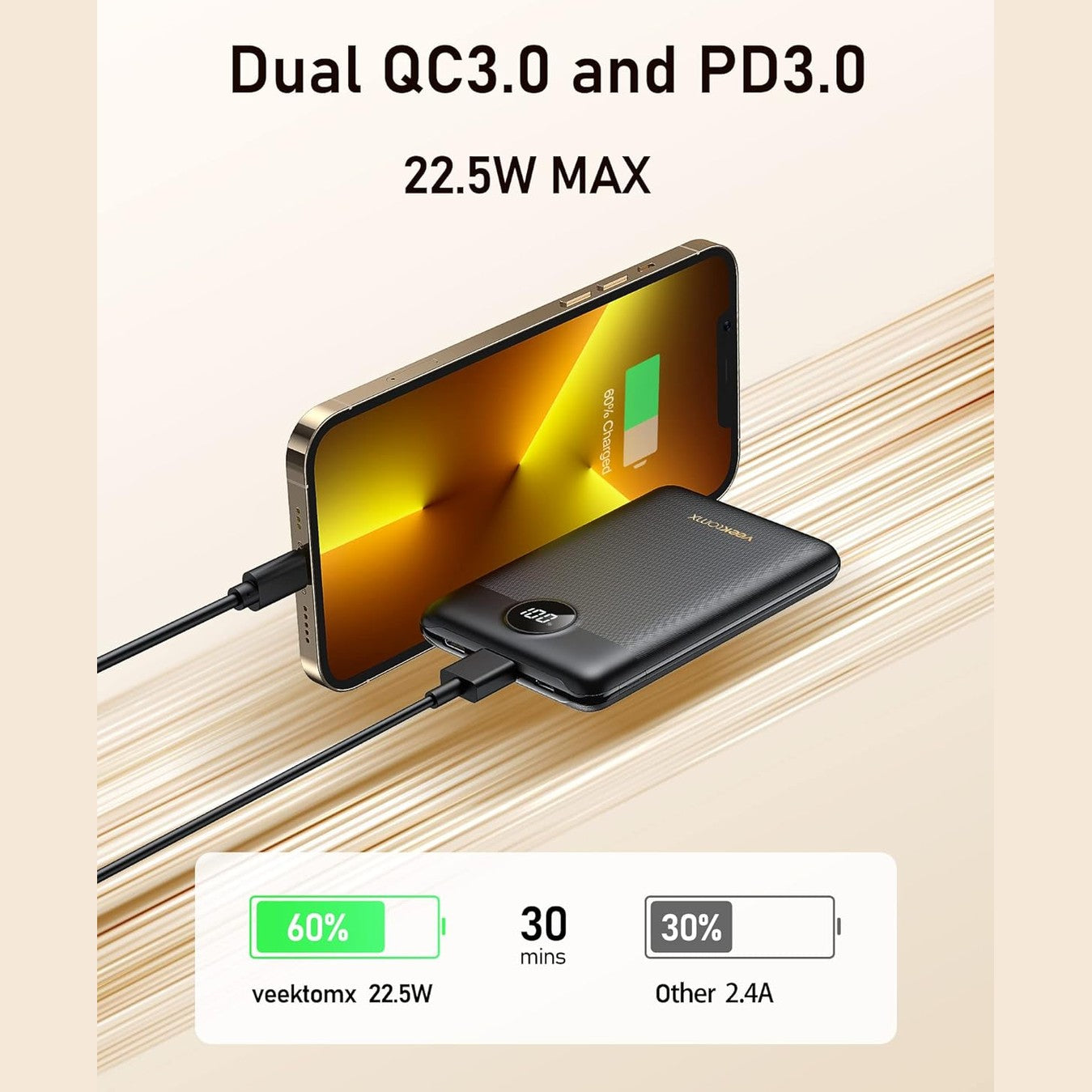 Veektomx - Fast Charging 22.5W Power Bank, 10000mAh, Slim Design, USB-C