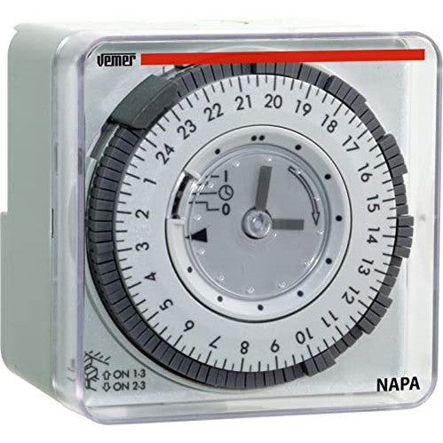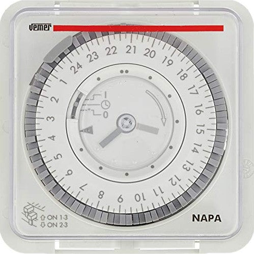 Vemer - Electromechanical Timer with Daily Programming, Plug-in Tabs, Wall/DIN Rail Mount