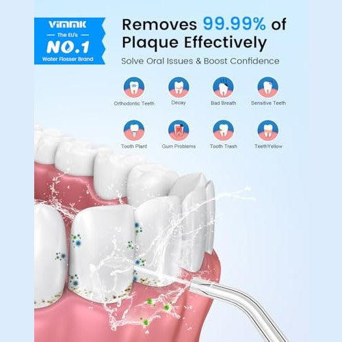Vimmk - Cordless Water Flosser with 9 Jet Tips, 5 Modes, IPX7 Waterproof
