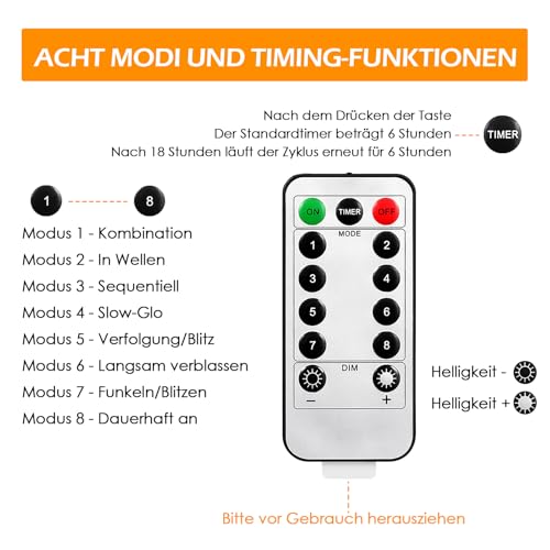 Wearxi - 300 LED Fairy Light Curtain, 8 Modes, Indoor/Outdoor Use, Warm White