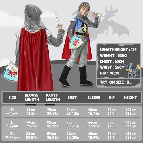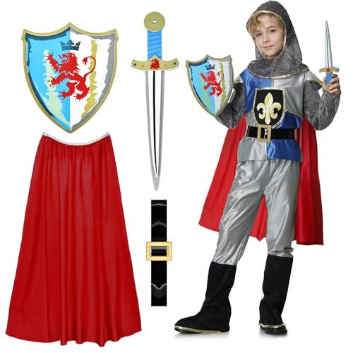 Wellchy - Children's Knight Costume with Helmet, Medieval Roleplay Outfit, Perfect for Dress Up Parties