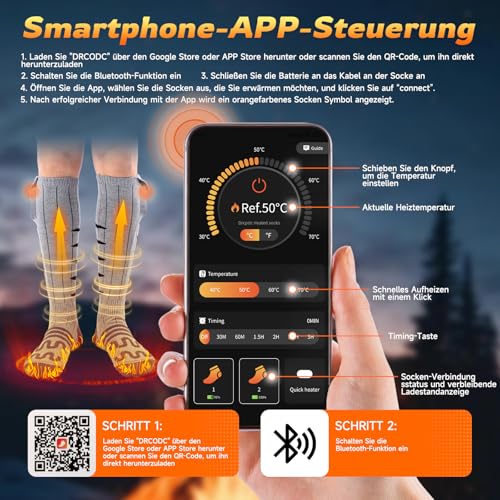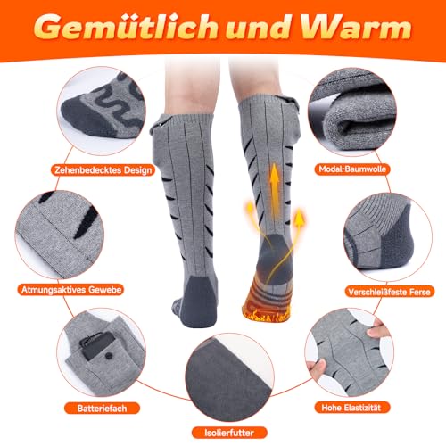 Wuqngi - Heated Socks with 5000 mAh Battery, Modal Cotton, Size 38-45