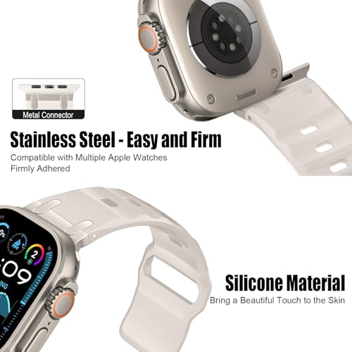Xmuxi - Soft Silicone Sport Strap for Apple Watch Ultra & Series 10-4, Rugged Design, Stainless Steel Adapter, Comfortable Fit for Men & Women