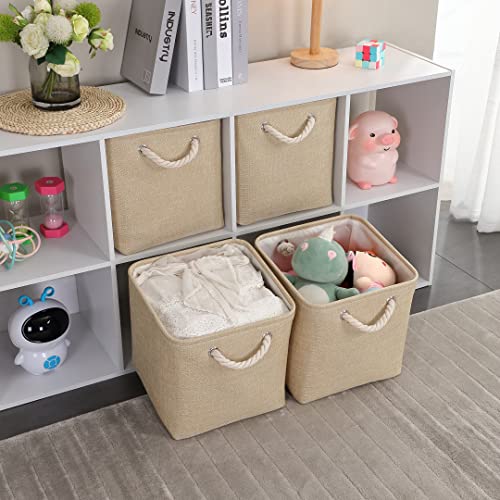 XnqPouha - Collapsible Canvas Cube Storage Box 30x30x30cm, Grey Beige