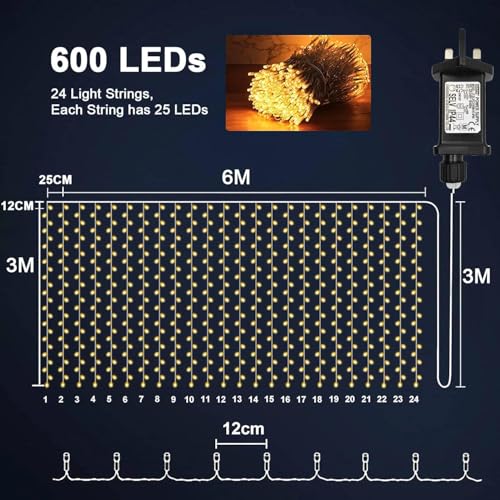 Yowin - 600 LED Curtain Lights, 6m x 3m, Mains Powered, 8 Modes, Waterproof