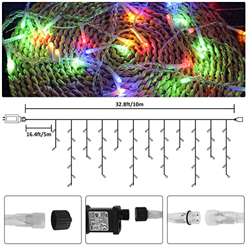 Yunsova - 33FT 400 LED Icicle Lights with Remote, 8 Modes, Waterproof