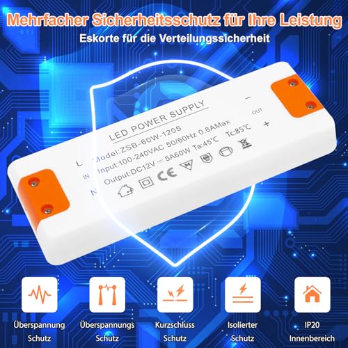 Zakvop - 12V LED Driver, 60W 5A Transformer, Compact Power Supply for G4 GU5.3 MR11 MR16